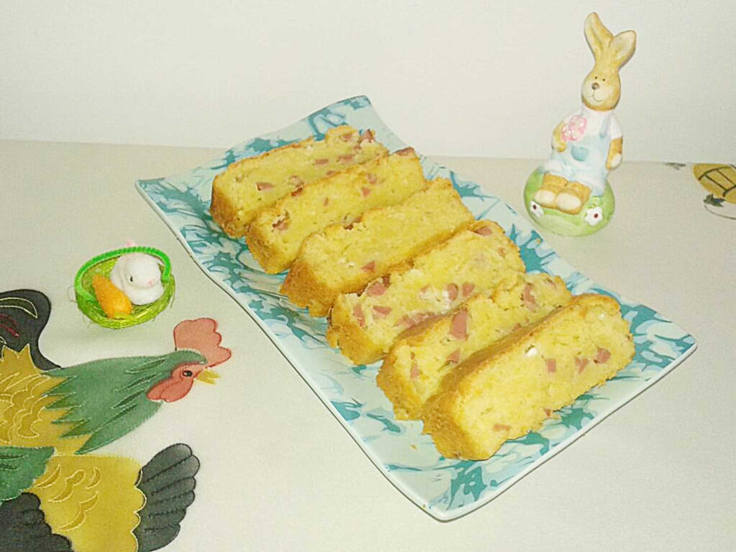 У одговарајућој посуди пенасто умутити маргарин и уз непрекидно мућење додавати једно по једно јаје. Затим сипати мешавину брашна и прашка за пециво,налити млеком и мутити миксером на најмањој брзини. Потом искључити миксер,умешати ситно сецкану шунку и нарендани тврди сир,посолити,све добро промешати како би се сви састојци сјединили.
