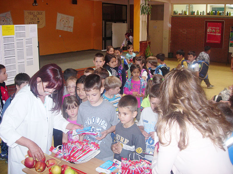 Чули су је и малишани окупљени како би одгледали за ову прилику примпремљену краћу представу на тему заштите зуба, након чега су ђаци, као благи подстрек добили по јабуку и четкицу за зубе, чисто да не забораве шта све треба, а шта никако не чинити…