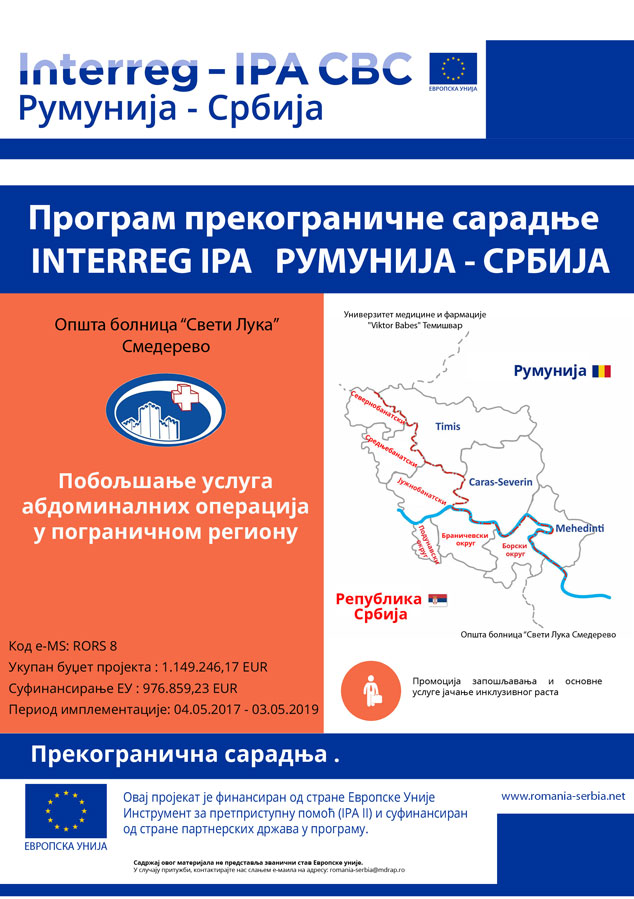 Носилац пројекта је Универзитет за медицину и фармацију у Темишвару, ОБ Свети Лука у њему учествује као други партнер, а поред промоције лапароскопије, као значајно боље методе за пацијенте у односу на традиционалне хируршке процедуре, пројектом је дефинисана и набавка дела најмодерније опреме за лапароскопску хирургију.