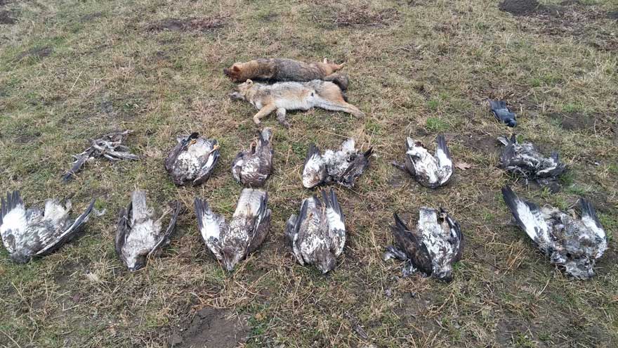На мање од 500 метара од првих кућа лежали су лешеви 12 мишара (Buteo buteo), строго заштићених птица грабљивица, као и четири шакала (Canis aureus), два пса и једне чавке (Corvus monedula). Неколико дана раније, Славиша Шошић из тог места надлежном инспектору за заштиту животне средине пријавио је налаз два мртва мишара који су однети на анализу у ветеринарски институт.