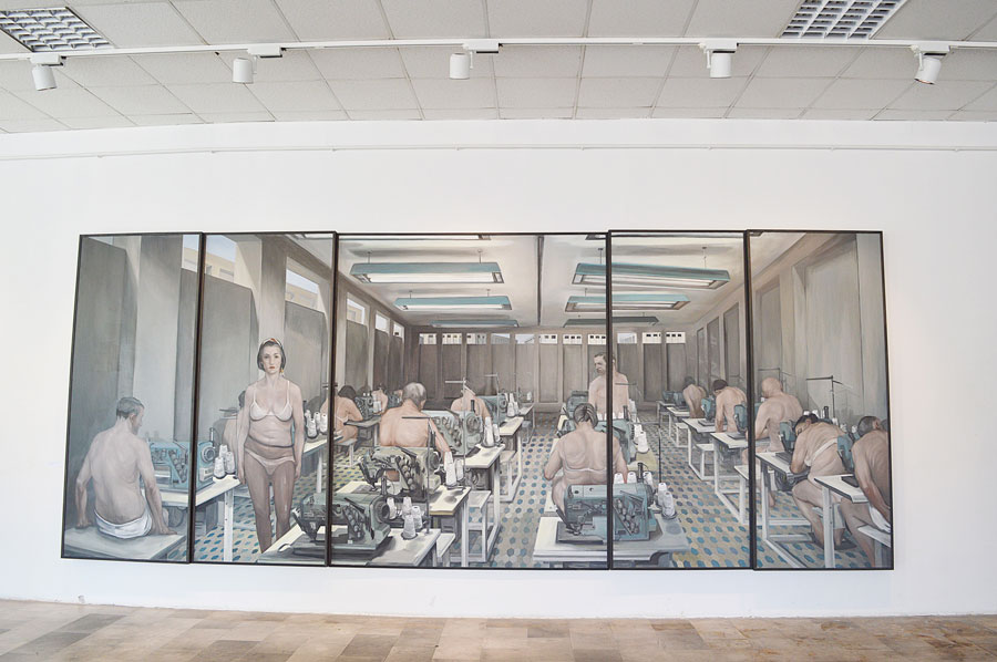 На изложби у Смедереву уметница представља три цртежа, од којих су два цртежи ентеријера – фабрика текстилне индустрије (предложак/цртеж за полиптих Оруђе делања) и пресек раскошне, ренесансне грађевине (постављене као позорница у који је могуће учитати претходни садржај). Слика “Оруђе делања” настала је као одговор на изопштеност права на приватност, права на живот и права на одлучивање, није фабрика једино место где су та права узета, ми смо дозволили да шаренило ничега буде основица живота. Прожимање цртежа „Дочек“ и слике „Оруђе делања” даје дијагнозу стања савременог човека у друштвеном систему који се све бахатије односи према појединцу, негирајући оне основне принципе за које се човечанство борило кроз XIX и XX век” наводи Биљана Ђурђевић.