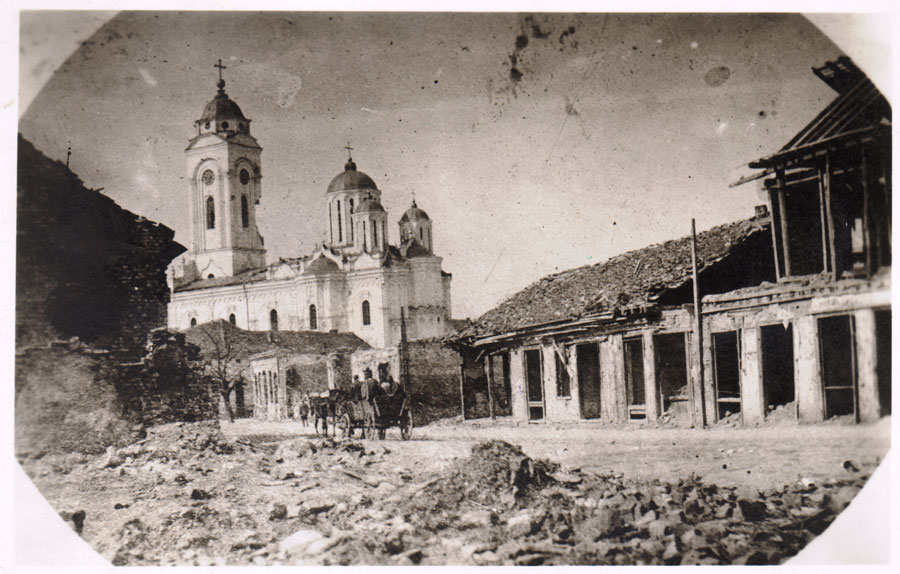 Градња Саборног храма Светог Герогија, почела је 1850. Завршен је четири године касније, за шта је било потребно много труда имајући на уму незгодан, мочварни терен крај Петријевског потока. Општина је, у свеопштем налету романтизма који је обнављао сјај средњевековне Србије, поставила изричит захтев да црква мора да подсећа на Манасију. Смедеревски храм тако јесте рађен по узору на Манасију, али има своје особености, и данас је то једна од најлепших српских цркава из 19. века. Оштећења на храму су настала 1915, у октобру. Оштећен је звоник, мање кубе је порушено, оштећени су сводови, унутрашњост цркве… То се види и на једној од разгледница коју су окупатори штампали. И то је један од феномена, да су се поносили разарањима које су починили. Неповратно је изгубљен дрвени иконостас са иконама Замфира Димитријевића. Служба се више није могла обављати ту, већ у храму Успења Пресвете Богородице. Постоји једна књига, „Српска црква у Великом рату“ Радмиле Радић и Момчила Исића, који су објавили податке из Архива Југославије где се каже да је извештавајући о штети на овој цркви за време рата и окупације, свештеник из Смедерева забележио: „Непријатељ, када је ушао у варош дотерао је кола и аутомобиле пред цркву. Товарио и односио. Тако је разграбио сву имовину црквену која се брижљиво спремала и прибирала од много година“. Процењујући да је однети инвентар цркве у Смедереву износио 500 000 динара без трошкова око поравке црквених зграда, овај светеник је истакао да је непријатељ однео осам црквених звона у тежини 4000 килограма, да је упропастио сат у вредности од 4000 динара и цео иконостас, наводећи и сав остали богослужбени инвентар, практично све што је унутра било, свештеничке одоре, крстове, путире… По завршетку рата, основан је Фонд Светог великомученика Георгија, на чијем челу је било Коло српских сестара Смедерева, које су организовале обнову и о томе постоји један скроман натпис, одакле сазнајемо да је свечано освећење обављено на Ђурђевдан 1923. Бон на име ратне штете је такође наплаћен и од тог новца је црква осликана 1935. Тада је урађен и мермерни иконостас.