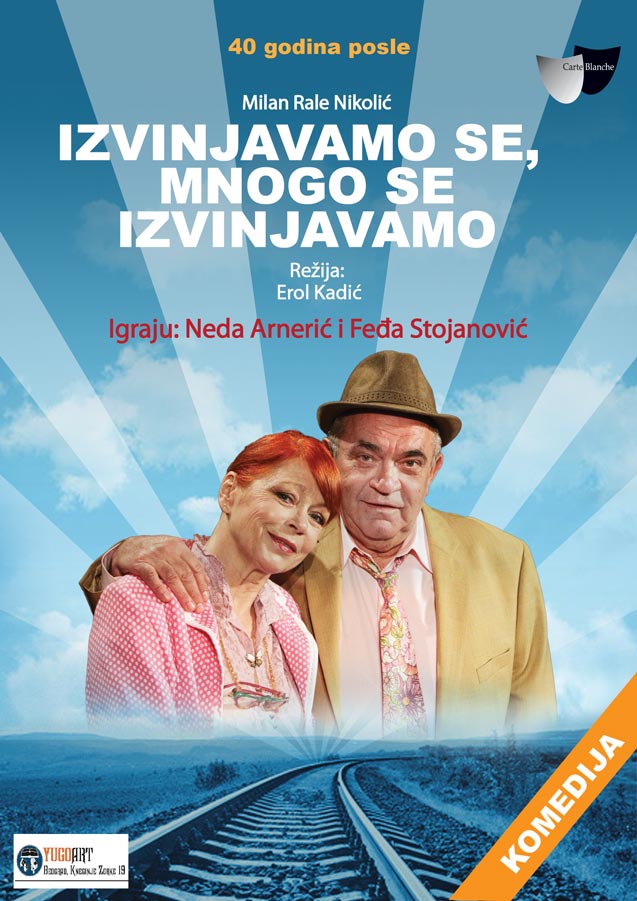 Након 40 година од премијере телевизијске комедије „ИЗВИЊАВАМО СЕ, МНОГО СЕ ИЗВИЊАВАМО“ духовити текст Милана Ралета Николића први пут је доведен до форме истоимене позоришне представе у којој ликове Борке и Милића тумаче Неда Арненић и Феђа Стојановић и која ће се пред публиком у Смедереву играти у уторак, 12. децембра са почетком у 20 сати, у Великој дворани Центра за културу Смедерево. Представа у режији Ерола Кадића на сцени дочарава сусрет и комункацију двоје људи у возу на релацији Ниш – Сталаћ – Параћин – Београд. На први поглед ради се о људима који представљају два неспојива света. Милић је простодушни и доброћудни сељак у својим шездесетим годинама из Сталаћа, по ставовима човек ни у селу, ни у граду. Борка је жена педестих година, рачуновођа, одмерена, емотивно затворена, нежна. Да ли је могуће да им се у једном дану деси нешто што чекају цели живот?