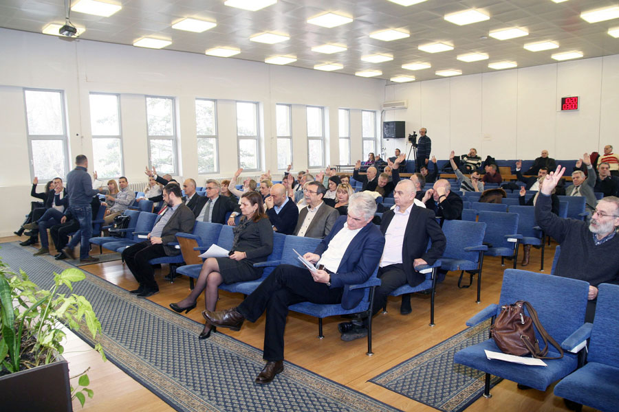 И поред чињенице да је атмосфера непосредно пред почетак седнице евидентно била другачија у односу на уобичајену и да се нешто догађа међу одборницима владајуће већине, којих је овога пута било нешто мање, заседање је кренуло уобичајеним темпом. На дневном реду биле су свега две тачке, при чему су у првој обједињене четири подтачке, а односе се на наставак процедура о којима је и раније било речи за скупштинском говорницом.