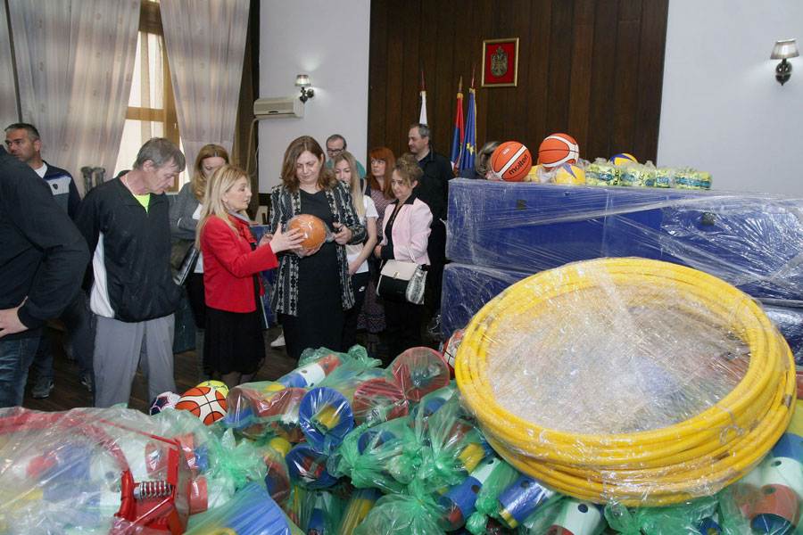 Овом приликом набављену опрему вредности око три милиона динара чине најразличитији реквизити, у складу са посебним потребама сваке школе па је купљено мноштво лопти за различите спортове, голови, табле за кошарку, разбоји, струњаче, столови за стони тенис, конопци, вијаче, штоперице… Догађају су присуствовали и Милош Ковачевић саветник министра за омладину и спорт, државни секретар у Министарству просвете Ана Ланговић Милићевић и Весна Недељковић помоћница министра за предшколско и основношколско образовање.