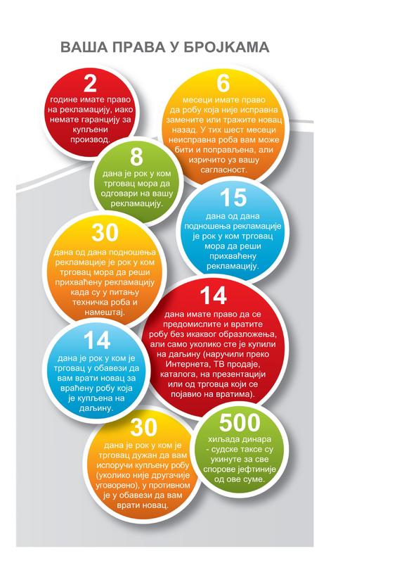 Ако пак ни они не успеју да реше проблем, увек остаје крајња варијанта, а то је суд. Наш народ избегава овакве процесе јер верује да су дуготрајни, скупи и исцрпљујући и да је тада „скупља дара него мера“, али оно што не знају јесте да се за подношење тужбе Основном суду, у потрошачком спору који не прелази износ од 500 000 динара, не плаћа судска такса, а рочиште се мора заказати и одржати најкасније у року од 30 дана од пријема тужбе. Како је саопштено претходне недеље поводом 15. марта, Дана заштите потрошача, прошле године је у Србији поднето 16 400 приговора, што је за 1900 више него у 2015. Такође, више од 80 одсто притужби и рекламација које потрошачи поднесу трговцима, решава се у корист потрошача.
