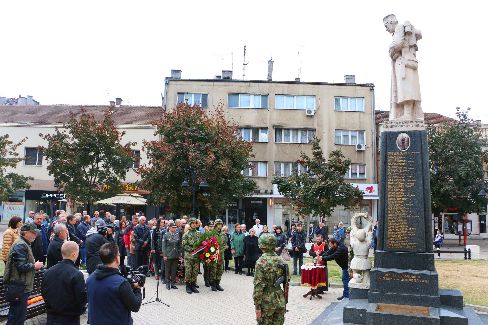 Венце су на Споменик борцима палим у Првом светско рату положили представници Гарнизона у Пожаревцу, Града Смедерева, Градског одбора СПС, Удружења потомака ратника 1912-1999, СУБНОРа док су парастос погинулима одржали свештеници Српске православне Црквене општине Смедеревске.
