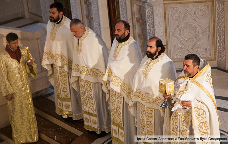 Ових дана смо у бројним медијима и новинама слушали разне неистине на рачун Цркве. O Цркви су причали они који не иду у њу, о причешћу су говорили они који се не причешћују, о свешетнослужитељима су говорили они који немају знања о црквеној јерархији… Зар није свети Апостол именом Христовим хроме подизао и мртве васкрсавао, па се и сама сенка њихове болести исцељивала. Тада је удивљени народ мислио да су они богови, а он им рече не него је Бог јачи од сваке болести. Свесни смо да постоје, како каже Апостол Павле, они који су слаби у вери, да требамо да избегнемо да се не саблазне. Не само за нас, него за цео свет је неопходно литургијско сабрање, међутим, у овој ситуацији литургијско сабрање морамо прилагодити поменутим условима. Овом приликом вас обавештавамо да ћемо свету литургију служити у црквеној порти. Молимо Вас да прописане одлуке државе поштујете.