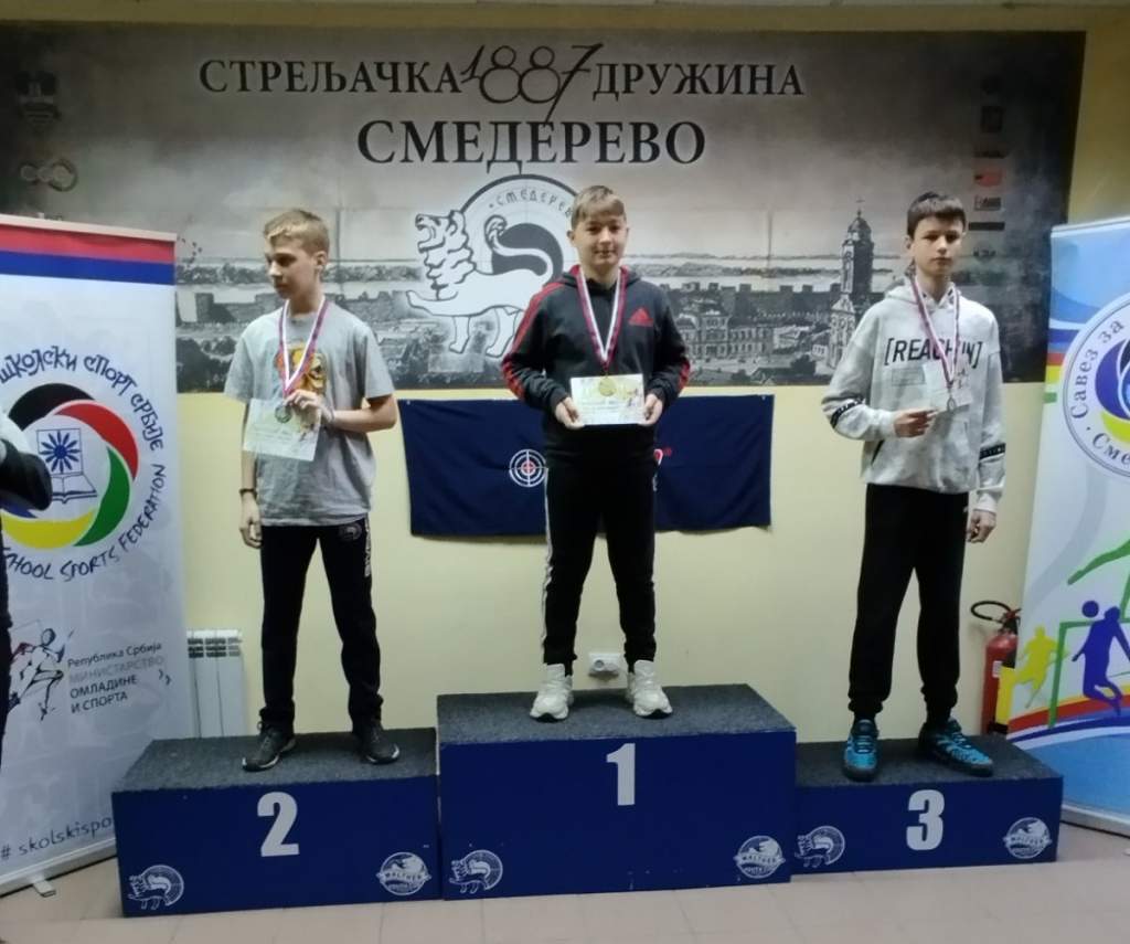 На ваздушном стрелишту у Спортској хали Смедерево, у организацији Савеза за школски спорт и олимпијско васпитање у Смедереву и Стрељачке дружине „Смедерево“, одржано је Градско школско такмичење серијском ваздушном пушком. Основци су пуцали по 20, а средњошколци 30 дијабола. Наступило је 55 ученика, већином чланова Стрељачке дружине „Смедерево“.