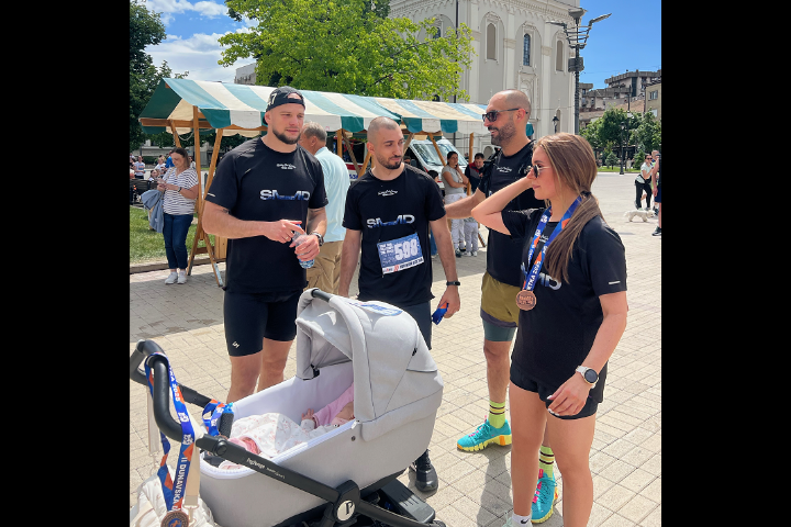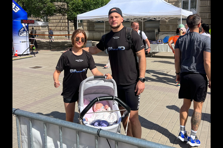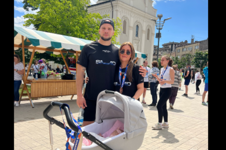 Породица Куљанин, фитнес тренери, тата Момир и мама Катарина, прошли су заједно кроз циљ гурајући колица са бебом, завршивши трку завидним временом од 1 сат и 10 минута, као и пласманом 105. на табели.
