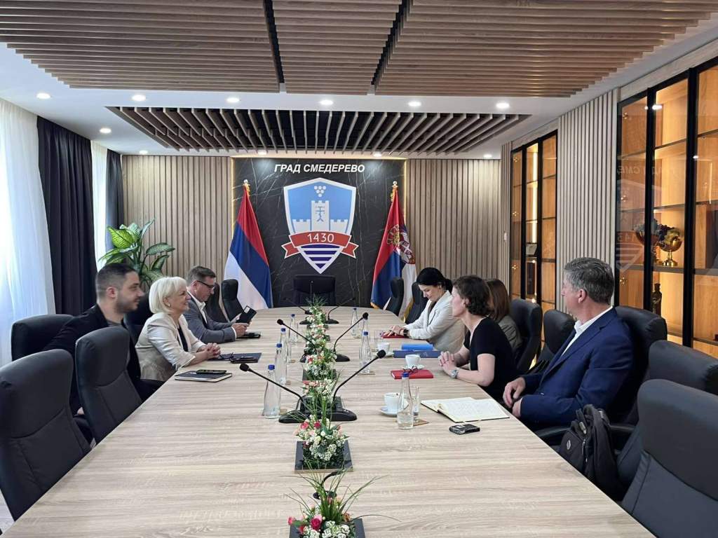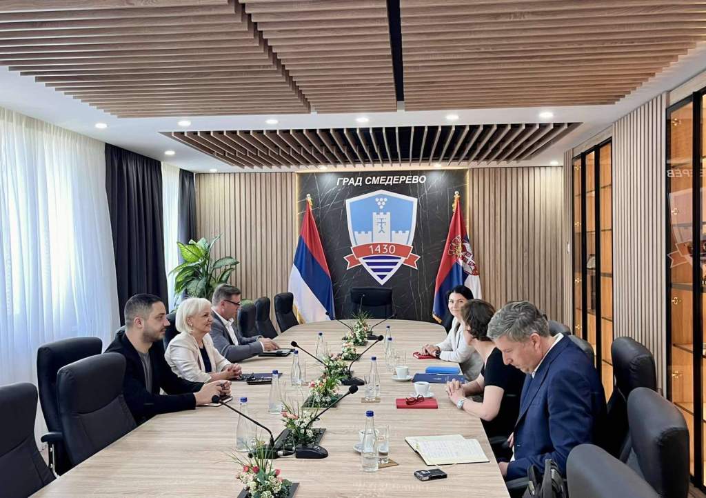 Госте је у Градској управи дочекала градоначелница Смедерева Јасмина Војиновић, заједно са највишим функционерима локалне самоуправе – начелником управе Гораном Милентијевићем и начелником Одељења за урбанизам Драганом Крстићем. Током састанка истакнуто је да Смедерево као град са снажном индустријском традицијом и културно-историјским наслеђем тражи нове путеве ка одрживом развоју и отворен је за партнерства која могу унапредити квалитет живота у заједници.