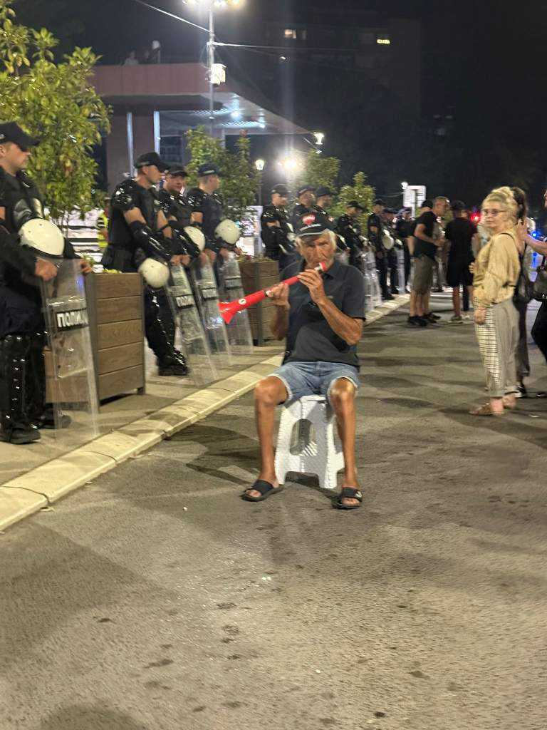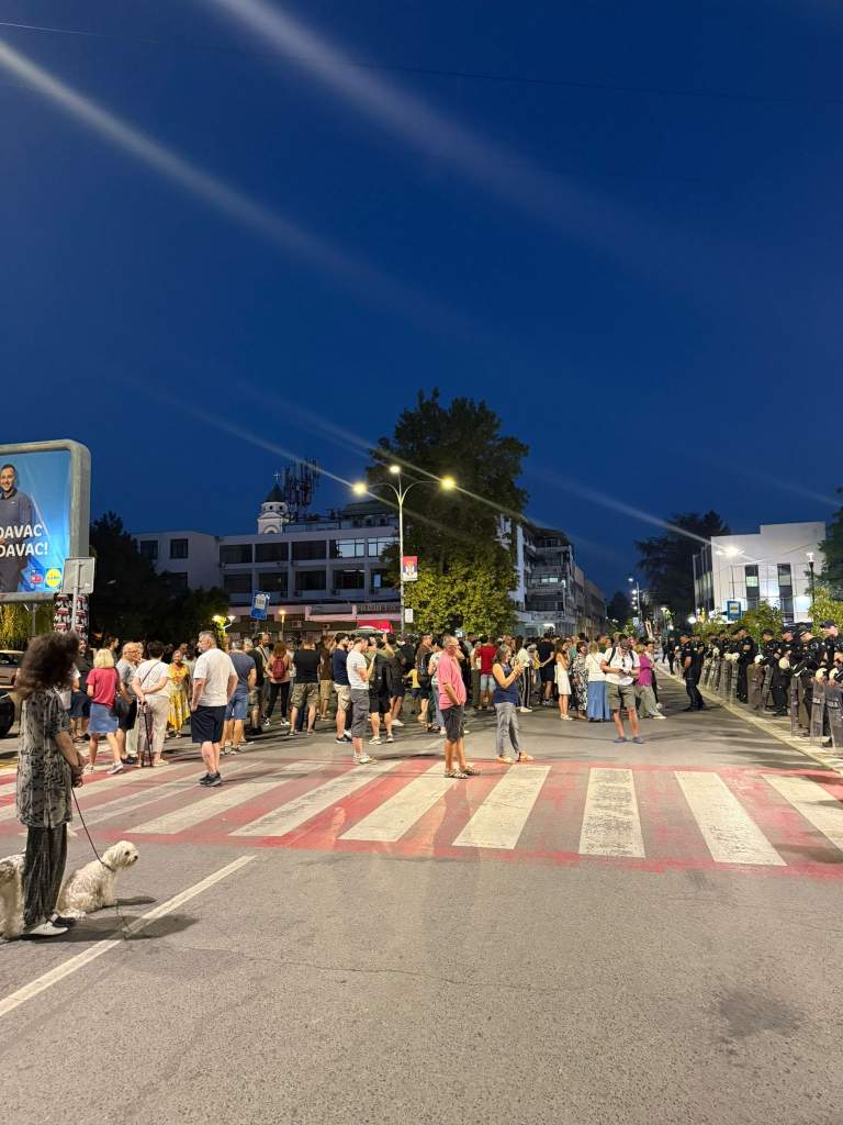 Друго вече протеста испред просторија Српске напредне странке у Смедереву окупило је више учесника него претходног дана, али и бројније обезбеђење. Испред зграде странке налазили су се редари у флуоресцентним прслуцима, особе у црним мајицама и качкетима, као и припадници полиције са опремом за разбијање демонстрација, који су се распоредили дуж Карађорђеве улице.